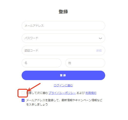 ・ページ下部の「同意して次に進むプライバシーポリシーおよび利用規約」チェックボックスをオンにしてください。
