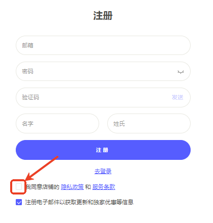 ・在页面底部勾选【同意隐私政策和服务条款】。